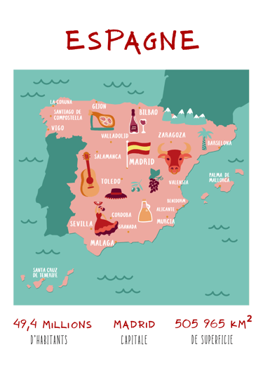 Un pays qui m'est cher... celui où j'ai passé de nombreuses vacances, durant mon enfance, chez mes grands-parents. L’Espagne est un pays qui se vit autant qu’il se visite, un mélange irrésistible de lumière, de couleurs et d’énergies. Des ruelles animées de Madrid aux façades modernistes de Barcelone, chaque ville raconte une histoire passionnée. On y découvre des villages blancs suspendus aux collines andalouses, des cathédrales grandioses, des marchés remplis d’odeurs d’agrumes, d’huile d’olive et de jambon ibérique. L'Espagne c'est un art de vivre : des repas qui s'éternisent en famille ou entre amis, des tapas à partager tard le soir, de la musique et des fleurs aux fenêtres, du flamenco vibrant... c'est aussi les plages infinies de la Costa de la Luz ou de la Costa Brava, les paysages volcaniques des Canaries ou les falaises sauvages des Asturies. Entre patrimoine unique, joie de vivre communicative et gastronomie généreuse, l’Espagne est une destination qui réchauffe le cœur et donne toujours envie d’y retourner.