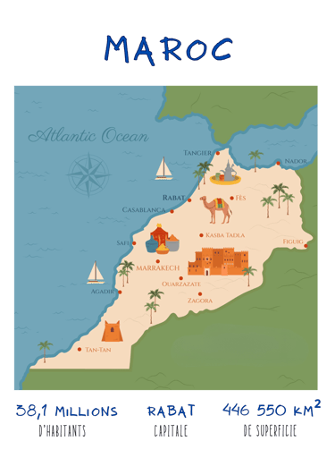 Le Maroc est un pays où chaque paysage raconte une histoire : les dunes dorées du Sahara, les villages accrochés aux montagnes de l’Atlas, les souks colorés de Marrakech ou les médinas bleutées comme Chefchaouen. On y flâne entre odeurs d’épices, thé brûlant à la menthe et ateliers où résonnent encore les gestes ancestraux des artisans. Le pays offre une incroyable diversité : océan Atlantique, riads raffinés, oasis secrètes, kasbahs en terre et villes impériales chargées de siècles d’histoire. On s’y laisse envelopper par la chaleur des couleurs, la douceur de l’hospitalité et la magie des lumières du soir. Le Maroc est une invitation à l’émerveillement, entre traditions vivantes, paysages grandioses et art de vivre profondément authentique.