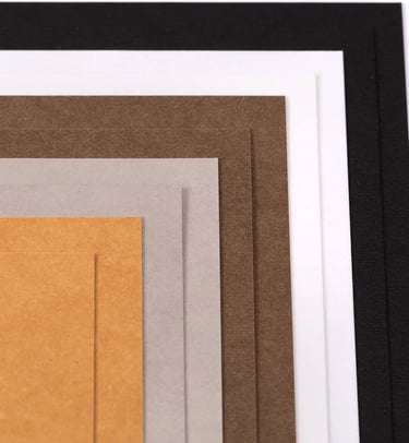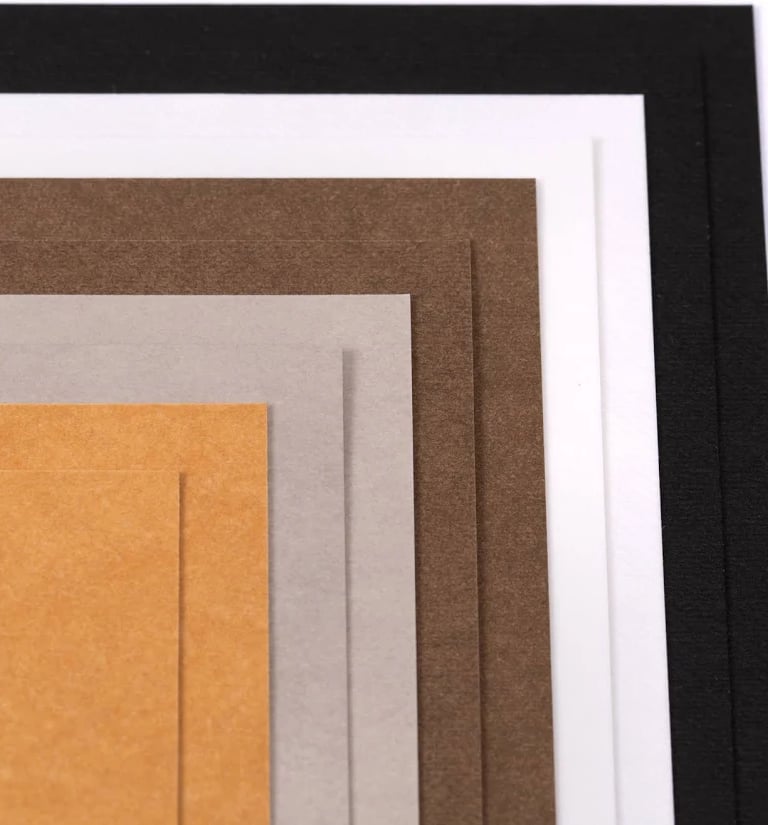 On le trouve en teinte naturelle (brun chaud, légèrement marbré) mais aussi en versions teintées ou imprimées — bien que la version naturelle soit de loin la plus adaptée pour la réalisation de vos cadres.