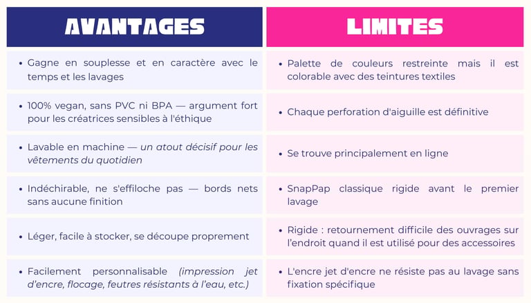 Choisissez une épaisseur de 1 à 1,5 mm — assez rigide pour tenir sa forme sous l'étiquette, assez fin pour se coudre sans difficulté.
