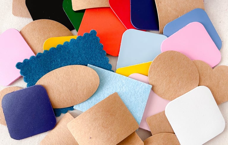 Privilégiez les chutes de cuir : pour des cadres d'étiquettes, de petits morceaux suffisent largement et cela permet d'exploiter pleinement cette matière en limitant les déchets.
