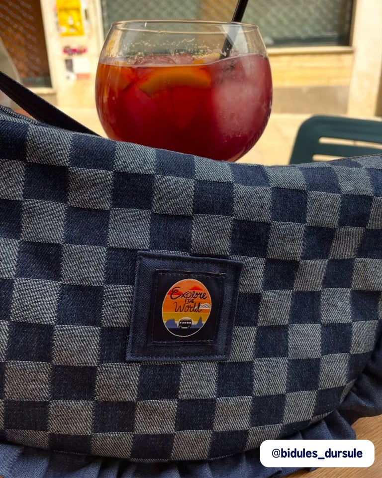 Etiquette "Explore the world" posée sur un cadre de chambray (Crédit : @bidules_dursulle)