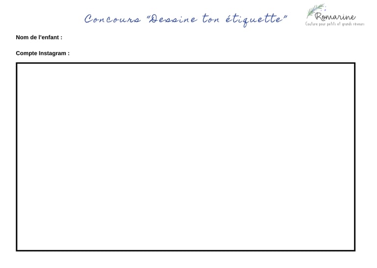 Vous avez aimé le concours "Balance ton étiquette" organisé en 2023, et bien c'est parti pour un deuxième opus, cette fois spécialement destiné aux enfants de 6 à 12 ans. Avec ce concours "Dessine ton étiquette" organisé du 15 janvier au 4 février 2014, vos bout'chous vont pouvoir exprimer leur créativité et participer à l'élaboration d'une étiquette tissée Romarine. Avant de participer, merci de prendre connaissance du règlement du concours disponible ci-dessous.